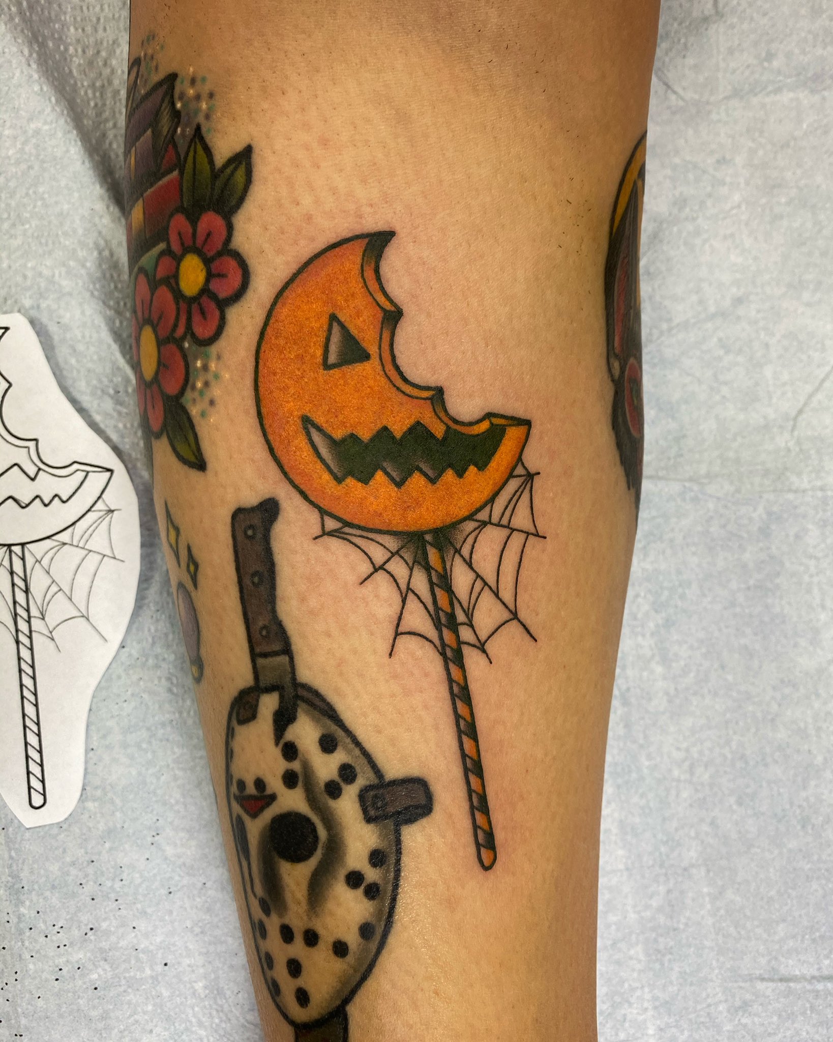 Tattoo of Sam from Trick r' Treat. Tattooed by Ellie Chase at Black